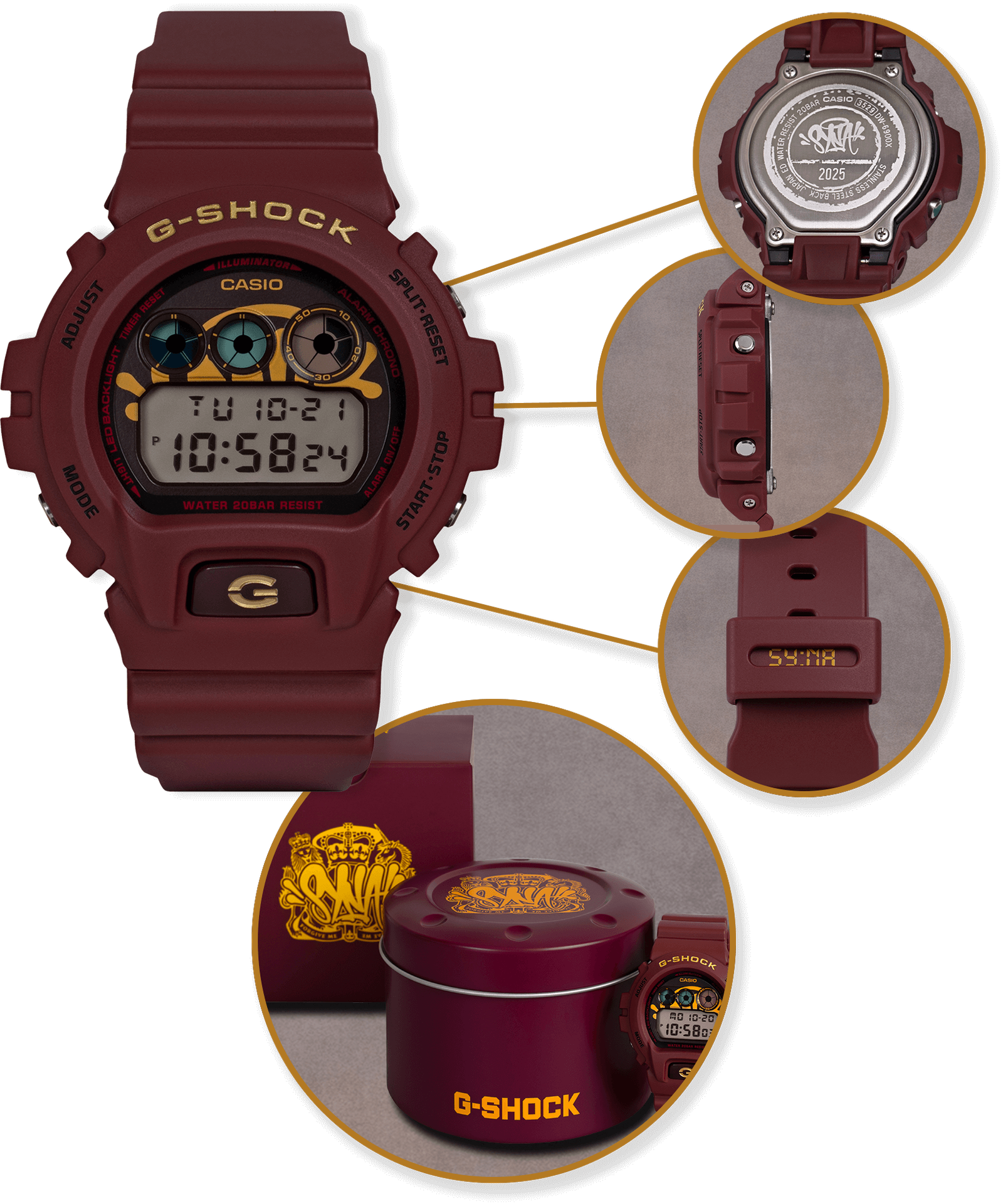 The SYNA x G-SHOCK DW-6900CC25 4ER is a premium collaboration timepiece that merges urban streetwear aesthetics with G-SHOCK’s legendary durability. Engineered for individuals who demand style, functionality, and reliability, this watch offers a bold design and high-performance features. Crafted with G-SHOCK’s shock-resistant technology, it ensures ultimate resilience against impacts, scratches, and daily wear. The sleek black and custom-accented design features the SYNA branding, adding an exclusive urban edge to the classic DW-6900 silhouette. Perfect for both everyday use and adventurous outdoor activities, this watch is more than just a timekeeper—it’s a statement piece for streetwear enthusiasts and collectors alike.
